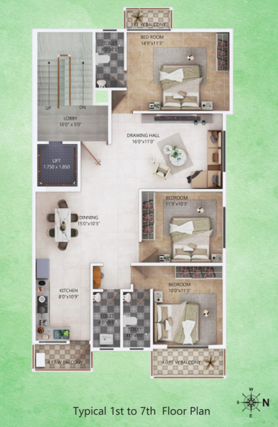 3 BHK Flats & Apartments For Sale In Hudkeshwar, Nagpur (1357 Sq.ft.)